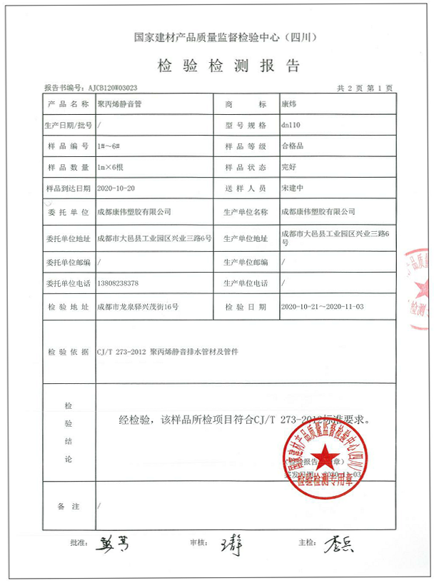 聚丙烯靜音管檢測報告-榮譽證書-pp超靜音管_聚丙烯靜音管-成都康偉靜音管廠家